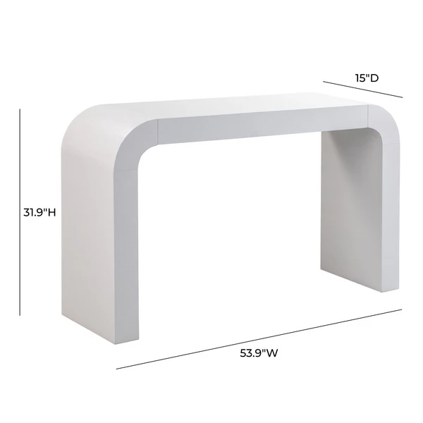 Featuring a rounded silhouette and white acacia finish, this sleek and stylish console adds modern appeal to any space.