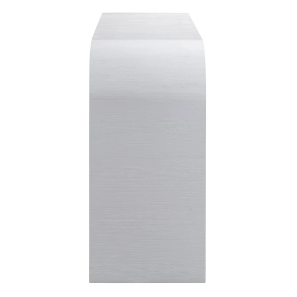 Featuring a rounded silhouette and white acacia finish, this sleek and stylish console adds modern appeal to any space.