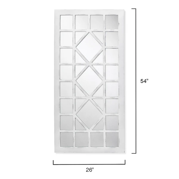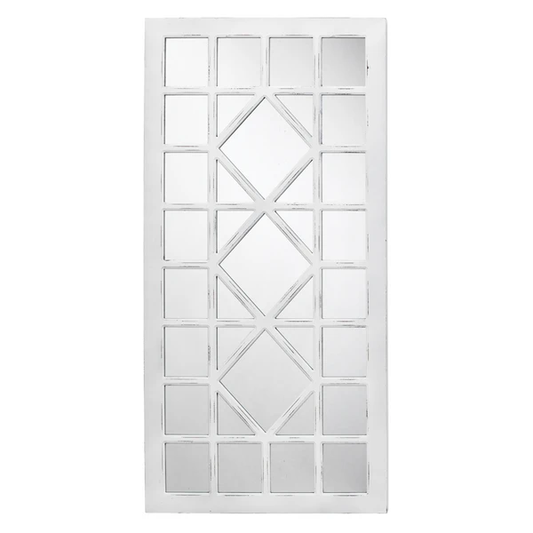Our Virginia Mirror is extremely versatile. This grid mirror has an distressed white finish which can compliment any décor.