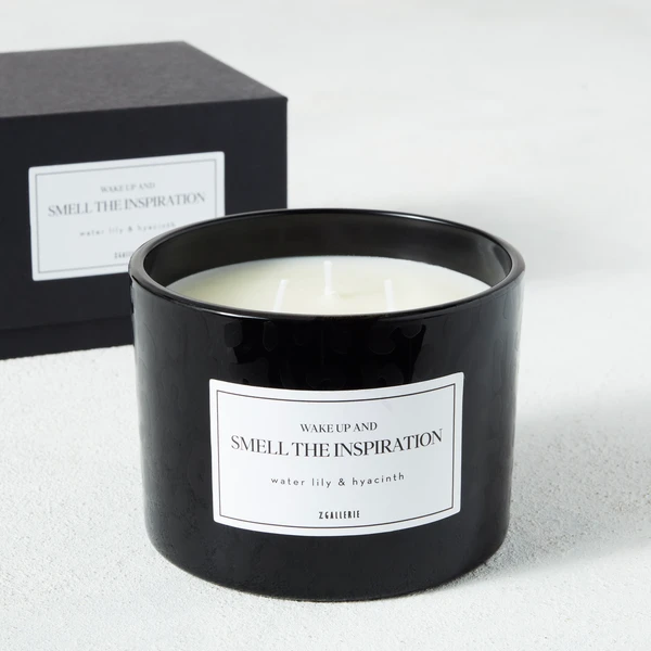 Presented in a black glass vessel with a tonal leopard print and sassy saying, this triple-wick candle features a refreshing water lily and hyacinth scent and arrives in a handsome box, ready for gifting.