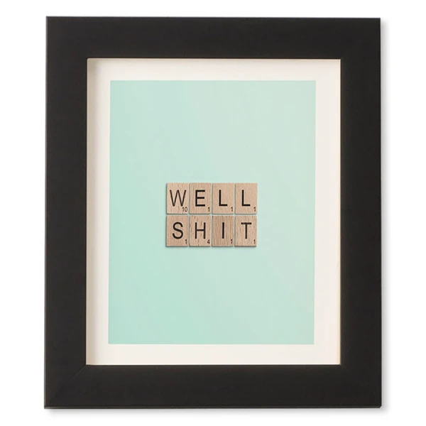 Well Shit is printed on a satin wood finish and comes exposed for a more artistic look.